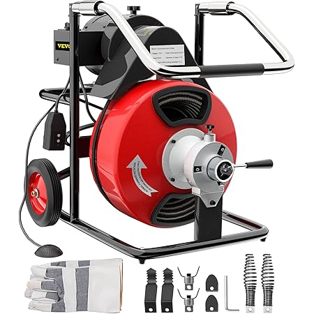 Vevor Drain Cleaner Machine 100ftx1 2in Electric Drain Auger 550w Sewer Snake Drill Machine Fit 1 Inch 25mm To 4 Inch 100mm Pipes W Wheels Cutters Foot Switch For Drain Cleaners Plumbers Amazon Com